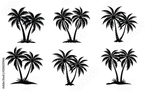 © creativesamingfx, Obraz premium Dabble coconut trees silhouette on white background.