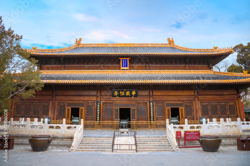 Naklejka premium Dacizhenru - the Hall of Great Mercy and Truth at Beihai Park in Beijing, China is the main hall of Heavenly King Temple, it's one of the finest Ming Dynasty architecture still standing