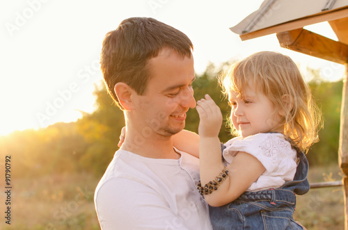 © archikatia, Fototapeta premium Dad and daughter in sunlight