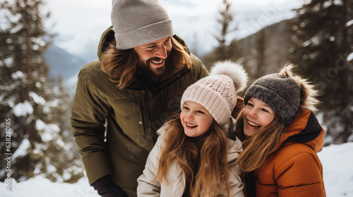 Fototapeta premium Dad and daughter on winter Generated AI