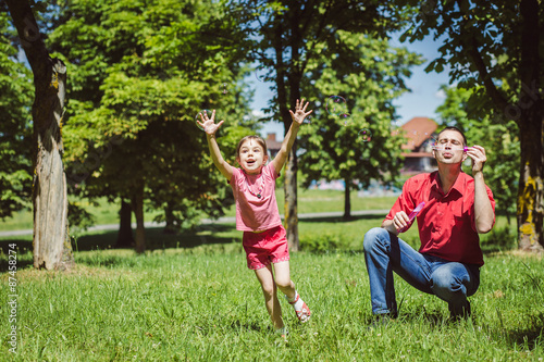 Obraz premium Dad and his daughter are making bubbles