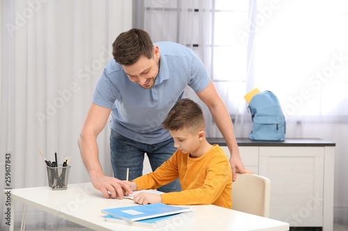 © New Africa, Fototapeta premium Dad helping his son with homework in room