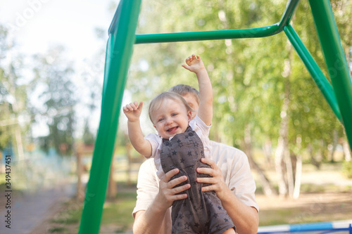 © Светлана Чепелюк, Obraz premium dad throws up a one-year-old son