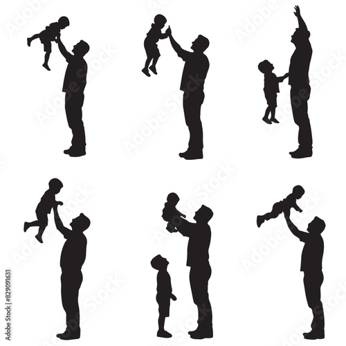 Obraz premium Dad with Children Silhouette Vector Set