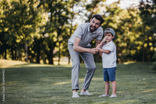 © Vasyl, Fototapeta premium Dad with son playing baseball
