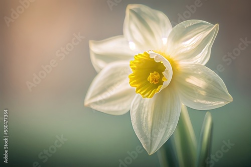 © Johnathan, Fototapeta premium Daffodil Flower Closeup With Copy Space Generative AI