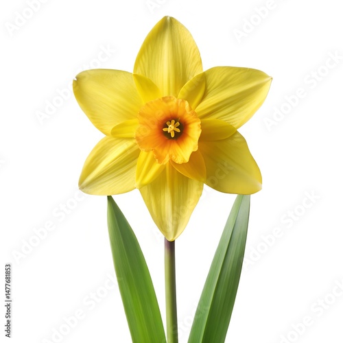 Fototapeta premium Daffodil Flower with Green Leaf Photo