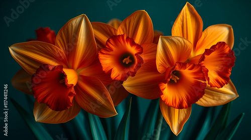 © Tasadaq, Obraz premium daffodils in the wind ganearive.ai