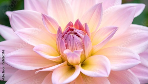 Naklejka premium Dahlia bloom Soft pink and yellow petals unfold from a tightly budded center