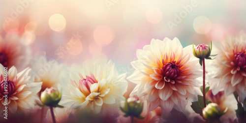 © maxa0109, Obraz premium Dahlia flowers. Dahlias Background. Beautiful Floral Background for Greeting card for Birthday, Mother's day, Women's day, Wedding