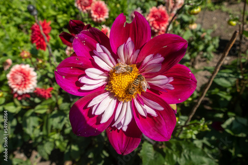 Obraz premium Dahlie mit Bienen