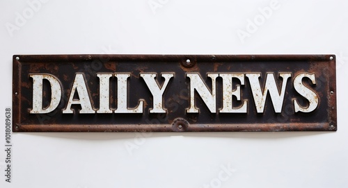 Obraz premium daily news lettering on antique rugged rusty metal sign on plain white...