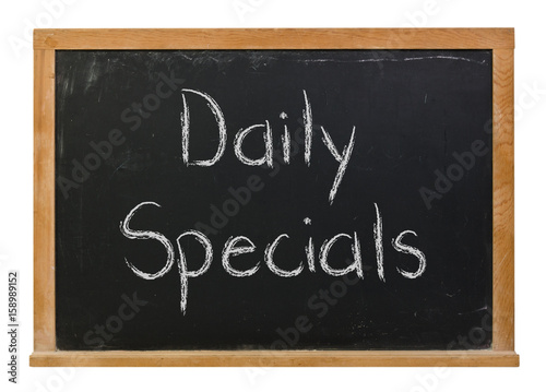 Obraz premium Daily Specials written in white chalk on a black chalkboard isolated on white