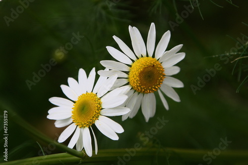Obraz premium Daisies on a dark green background.