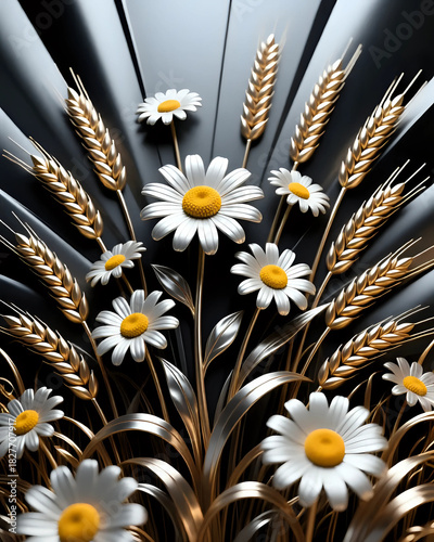 © CIZORTWIST , Naklejka premium Daisies on black background