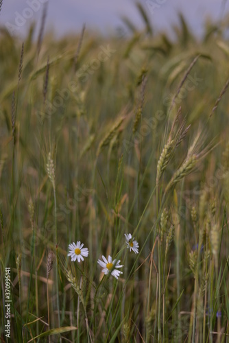 © badescu, Obraz premium daisies through the grassy field. Leucanthemum in the sunset light