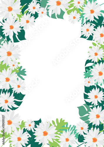 © ammij, Obraz premium Daisy and green leaf frame with white space for greeting card invitation or any decoration