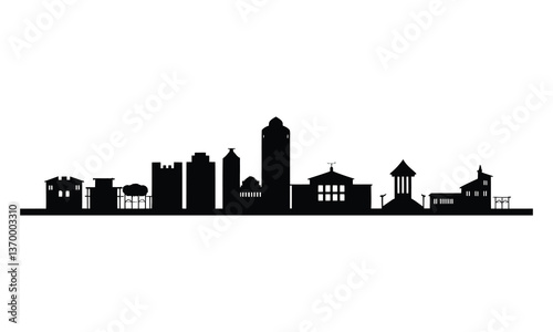 © MdAkram, Naklejka premium Dakar City Skyline Silhouette, Vector, Icon, White Background.