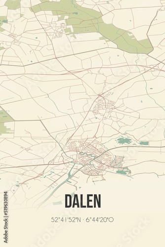© Rezona, Fototapeta premium Dalen, Drenthe vintage street map. Retro Dutch city plan.