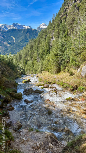 © Wolfgang Hauke, Fototapeta premium dalfazer waterfall during Spring time with deep blue background sky