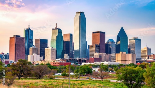 © Kitta Studio, Fototapeta premium Dallas Skyline at Sunset: A Vibrant Metropolis in Texas