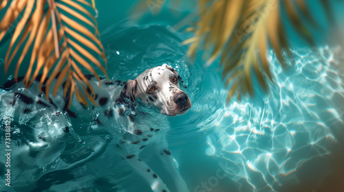 © Anna, Obraz premium Dalmatian dog swimming in the pool