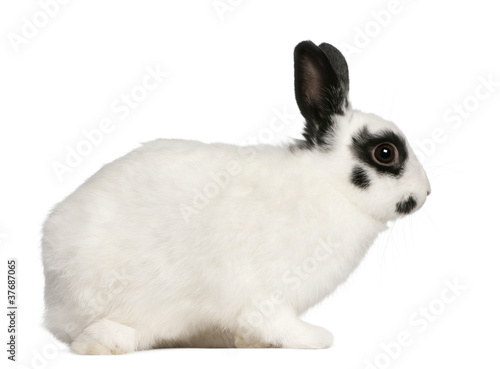 Obraz premium Dalmatian rabbit, 2 months old, Oryctolagus cuniculus, sitting