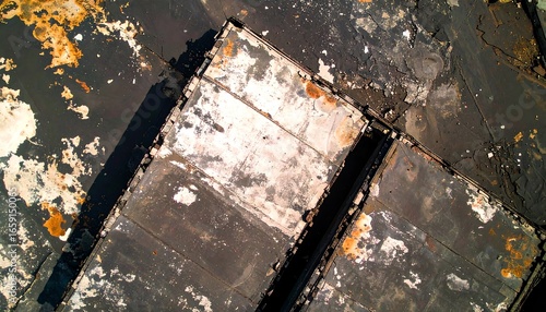 © Masteran, Obraz premium Damaged metal panels, overhead view