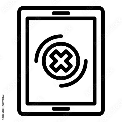 Fototapeta premium Damaged tablet icon. Outline damaged tablet vector icon for web design isolated on white background