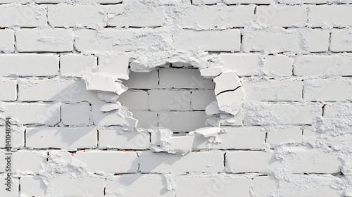 © CreativeCreations, Fototapeta premium Damaged white brick wall with a hole