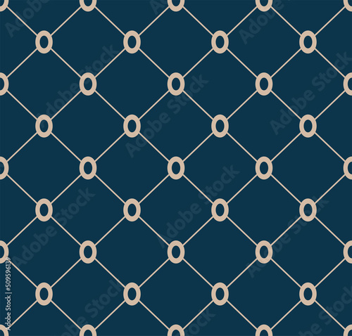 © mushan, Naklejka premium Damask diamond grid pattern in navy blue and white color. Art deco line art.