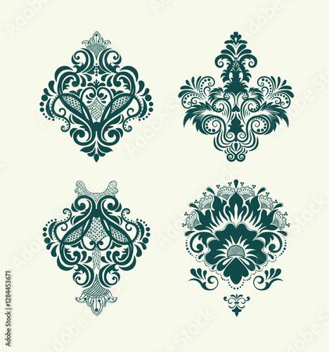 Fototapeta premium Damask ornamental elements sets symmetric floral shapes