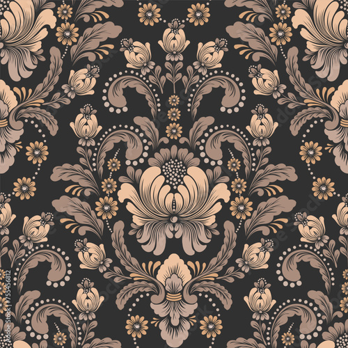 © garrykillian, Fototapeta premium Damask seamless pattern element. Vector classical luxury old fashioned damask ornament, royal victorian seamless texture for wallpapers