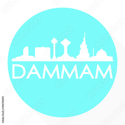 Naklejka premium Dammam, Saudi Arabia Round Button City Skyline Design. Silhouette Stamp...