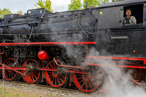 © Blickfang, Fototapeta premium Dampflokomotive mit Lokführer