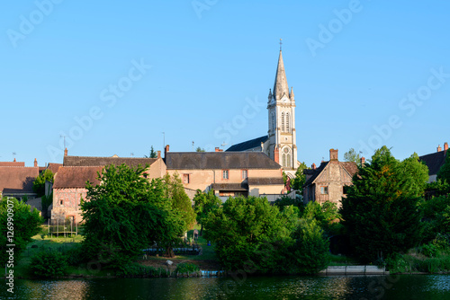 © Florent, Fototapeta premium Dampierre-en-Burly view from the pond in Europe, France, Centre Val de Loire, Loiret, Dampierre en Burly, in summer, on a sunny day.