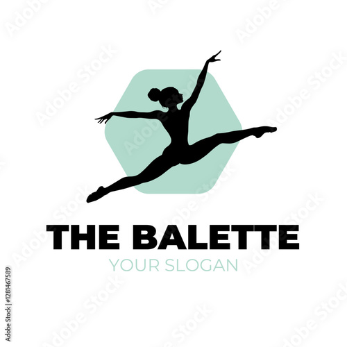© Artem, Naklejka premium Dance Balette School Logotype Template with Flying Woman Full Body Silhouette