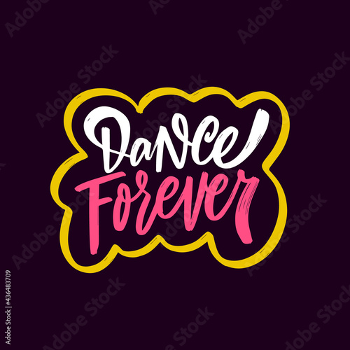 © Oktyabr, Obraz premium Dance forever hand drawn colorful calligraphy phrase. Vector illustration.