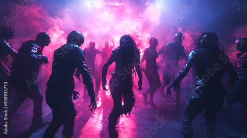 © D3ll.Maccaroni, Fototapeta premium dance party where attendees are dressed as zombies and other spooky characters