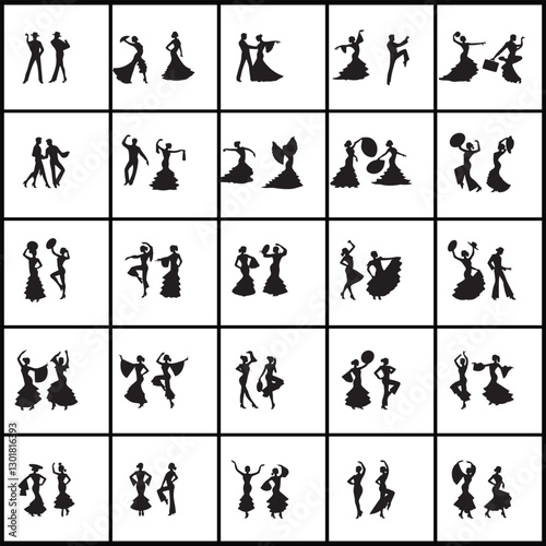 © SOHIDUL, Fototapeta premium Dance silhouettes icons design on a white background