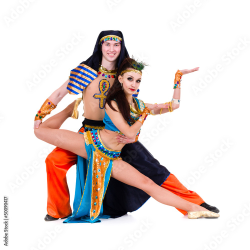 Fototapeta premium dancers couple dressed in Egyptian costumes posing