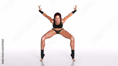 © freestyle_images, Fototapeta premium Dancing athlete woman, fit dancer girl standing on toes on white background, front view, 3D rendering