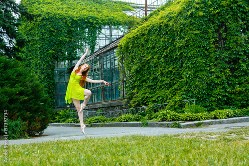 Fototapeta premium Dancing ballerina in the summer garden.