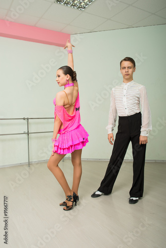 Naklejka premium Dancing, ballroom dancing, dance studio, man and woman