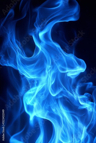© Ilja, Fototapeta premium Dancing Flames, Vibrant Blue Fire Abstract on Dark Background With Copy Space, Abstract Background