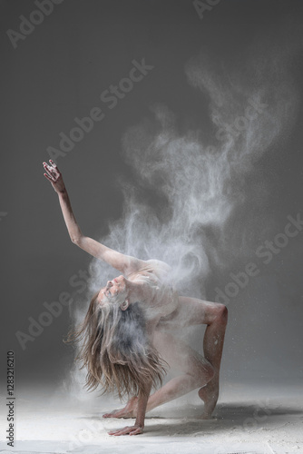 © Alexander Y, Obraz premium Dancing in flour dancer posing on a studio background