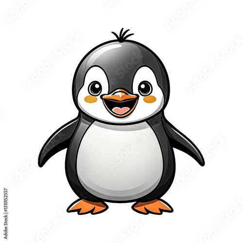 Fototapeta premium Dancing Penguin – Doodle-Style Drawing (Clean Background): Draw a chubby little penguin with flappy wings and tiny feet, doing a happy dance
