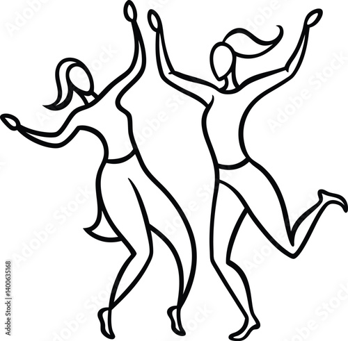 Fototapeta premium Dancing People Silhouettes Expressive Motion Line Art Collection