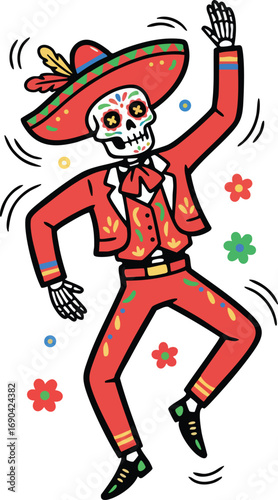 Fototapeta premium Dancing Skeleton Silhouette – Fun Halloween Vector Illustration