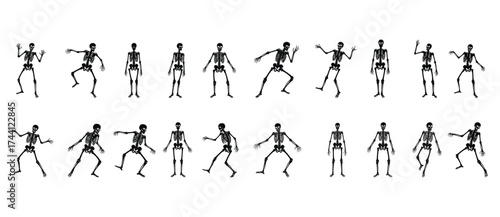 © Panji, Naklejka premium Dancing Skeletons Vector Illustration – Halloween Bones Icon Set on White Background